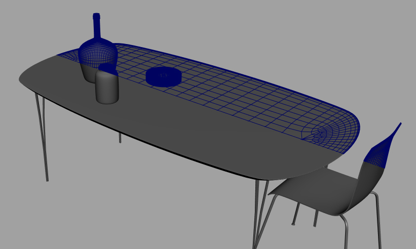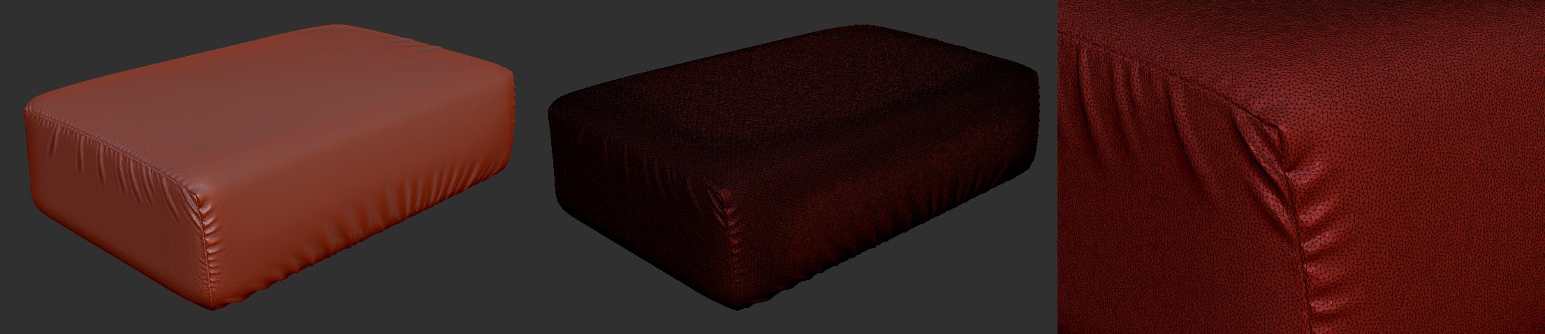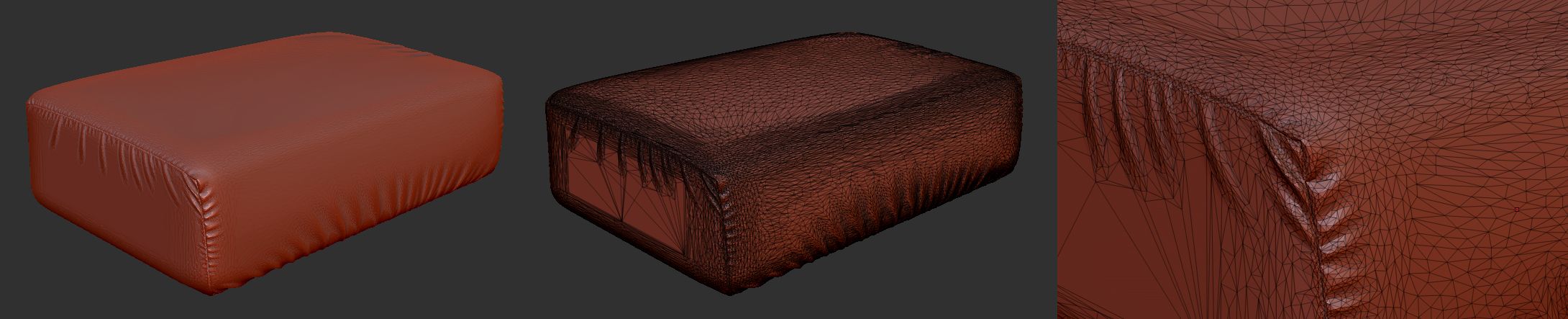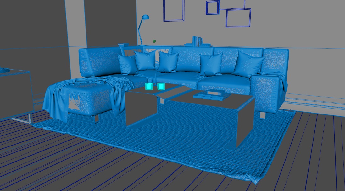 Pour le canapé, nous avons tout d’abord réalisé un base mesh très simple sur Maya. Puis nous l’avons affiné et y avons ajouté quelques subdivisions.