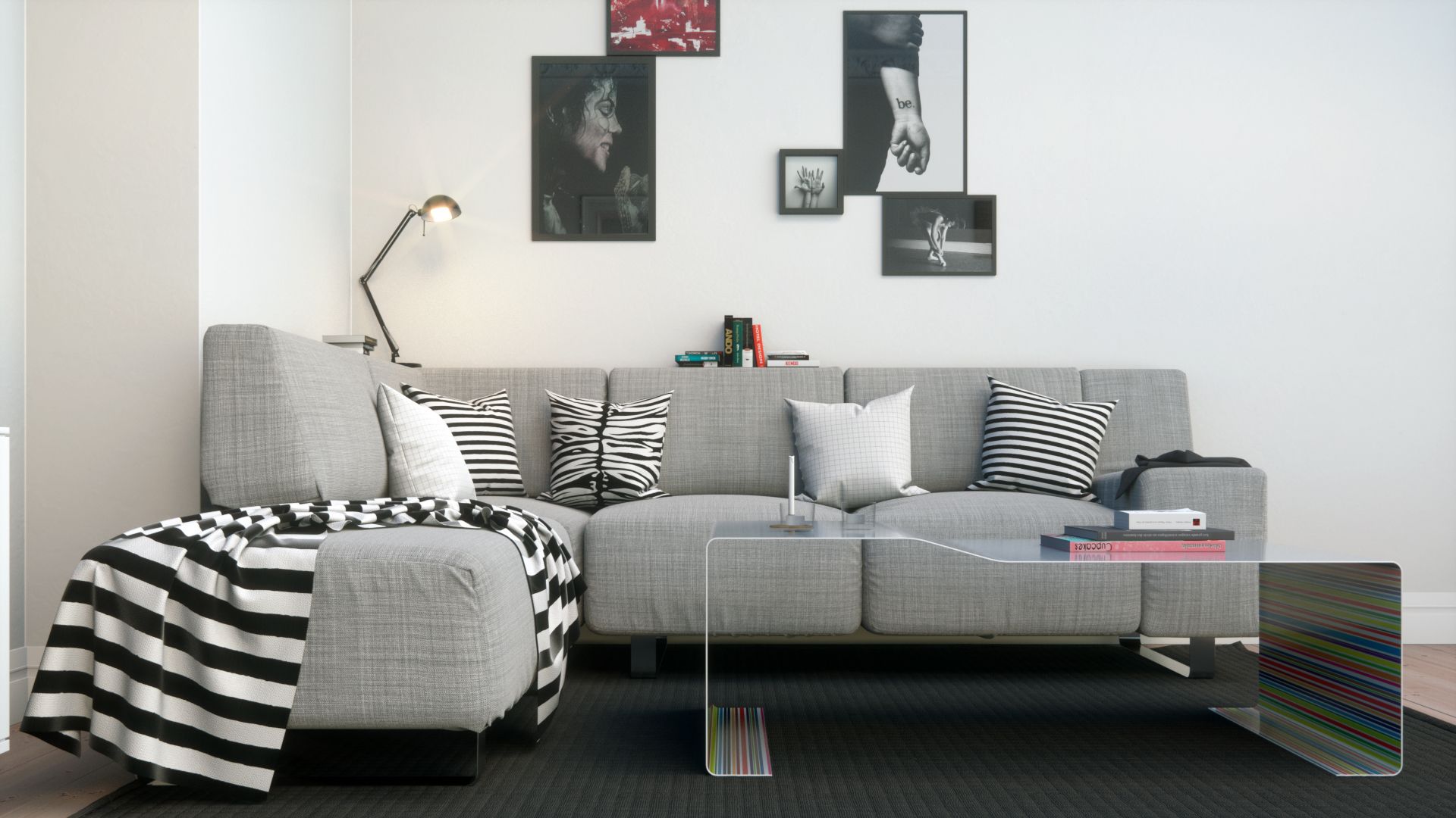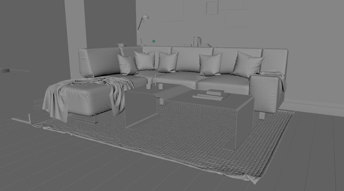 La totalité de cet appartement a été modélisé par nos soins. Pour commencer, nous nous sommes attaqués à la pièce de vie. Et plus particulièrement à la partie salon.