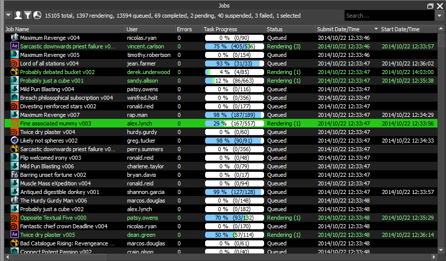 Et oui parce-que quand tu lances une anim tu peux par exemple calculer un frame tout les 30 frames puis la séquence dans l’ordre. Comme ca tu as deja une vue d’ensemble du plan et tu repères les bugs de la fin avant de te taper 8J de rendu, et si tu t’y est bien pris tu peux attaquer le compo direct ! D’ailleurs Deadline te préviens si il y a une asset manquante sur le réseau, une node qui vrille etc. du coup les rendus sont beaucoup moins soumis aux erreurs, enfin… plus à cause de nodes 😉