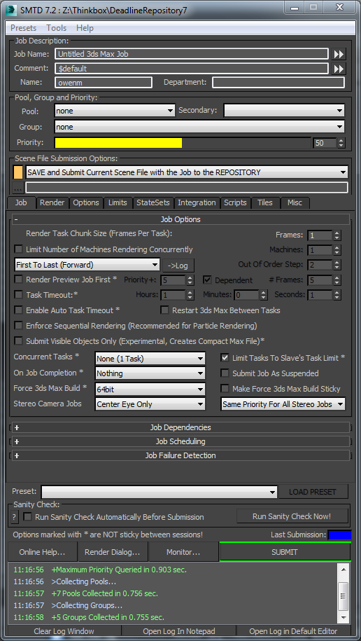 C’est aussi ce qui change vraiment la donne comparé à Backburner: le fait de pouvoir calculer des rendus depuis différents softs et avec une configuration avancée. Oui je sais c’est en partie ‘faisable’ dans BB mais tellement tout sauf pratique que ca sert à rien, surtout que tout le monde n’est pas à l’aise avec le code… La c’est tout le contraire 🙂 Chaque application à un submitter dédié totalement en adéquation avec les types de rendus que vous allez lancer, perso c’est surtout pour 3dsMax et After Effects, mais la liste est vraiment longue.